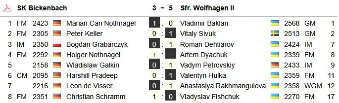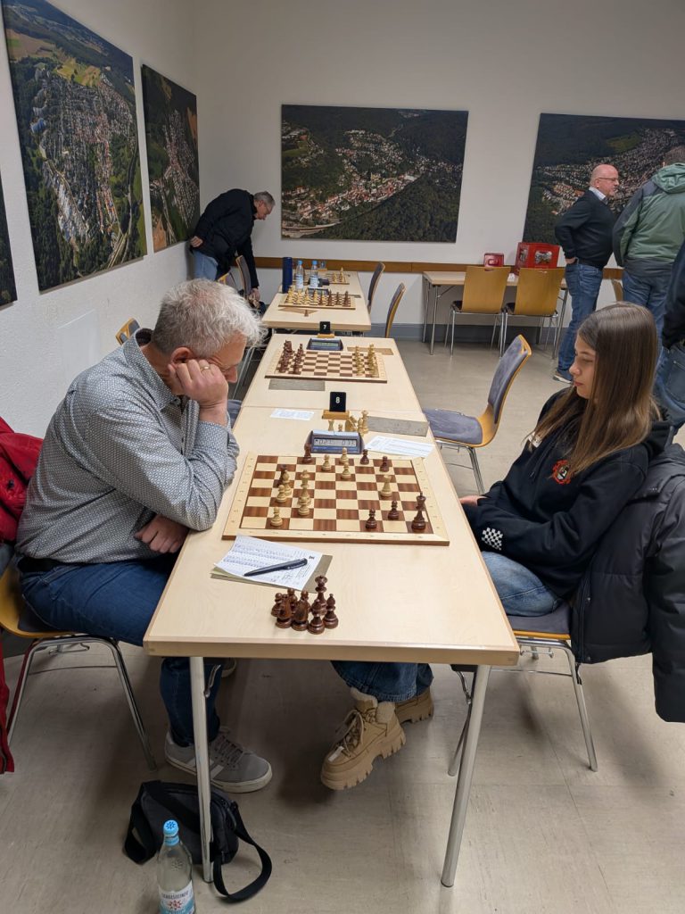 Ein Wochenende später konnte auch das Oberligateam nur mit sieben Spielern antreten, gewann aber dennoch seine Mannschaftskämpfe gegen Heusenstamm und den direkten Mitkonkurrenten SK Bickenbach, was mit einer deutlichen Tabellenführung belohnt wurde.
