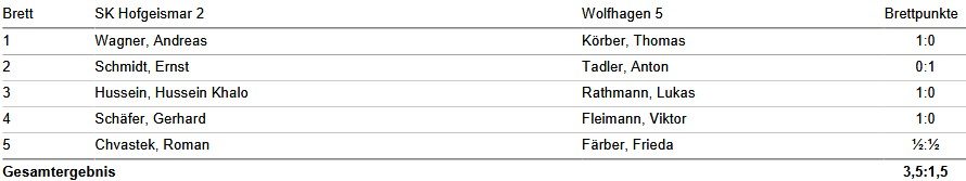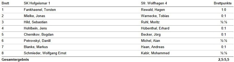 Unser 5. Mannschaft kämpfte aufopferungsvoll, musste sich aber dem Team des SK Hofgeismar 2 geschlagen geben.